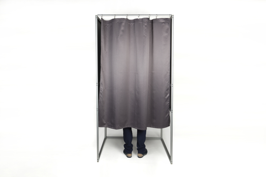 5° une tenture descendant sous le niveau du pupitre. L'usage de cette tenture est facultatif si, nonobstant l'entrée de l'isoloir laissée ouverte, la configuration de l'isoloir rend impossible aux autres électeurs la vision du bulletin de vote de l'électeur présent dans cet isoloir.