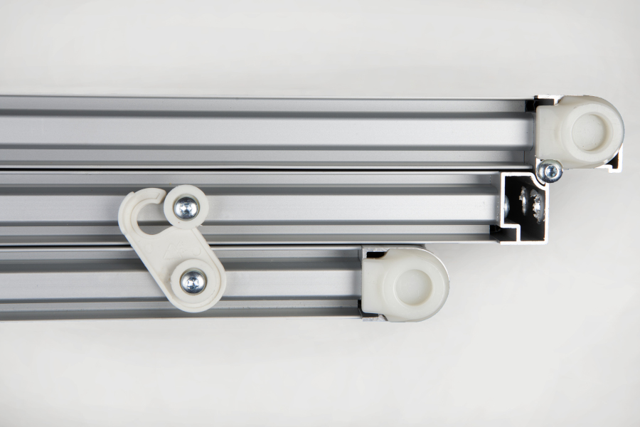 - Matériau & Design : Profils softline en aluminium anodisé clair, panneaux en polypropylène gris ignifuge, etc