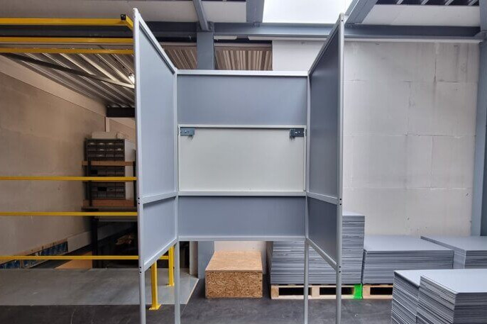 - Isoloir composé de 3 parois avec profils aluminium et panneaux PVC