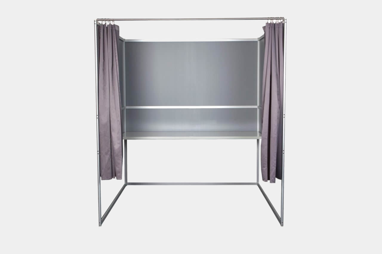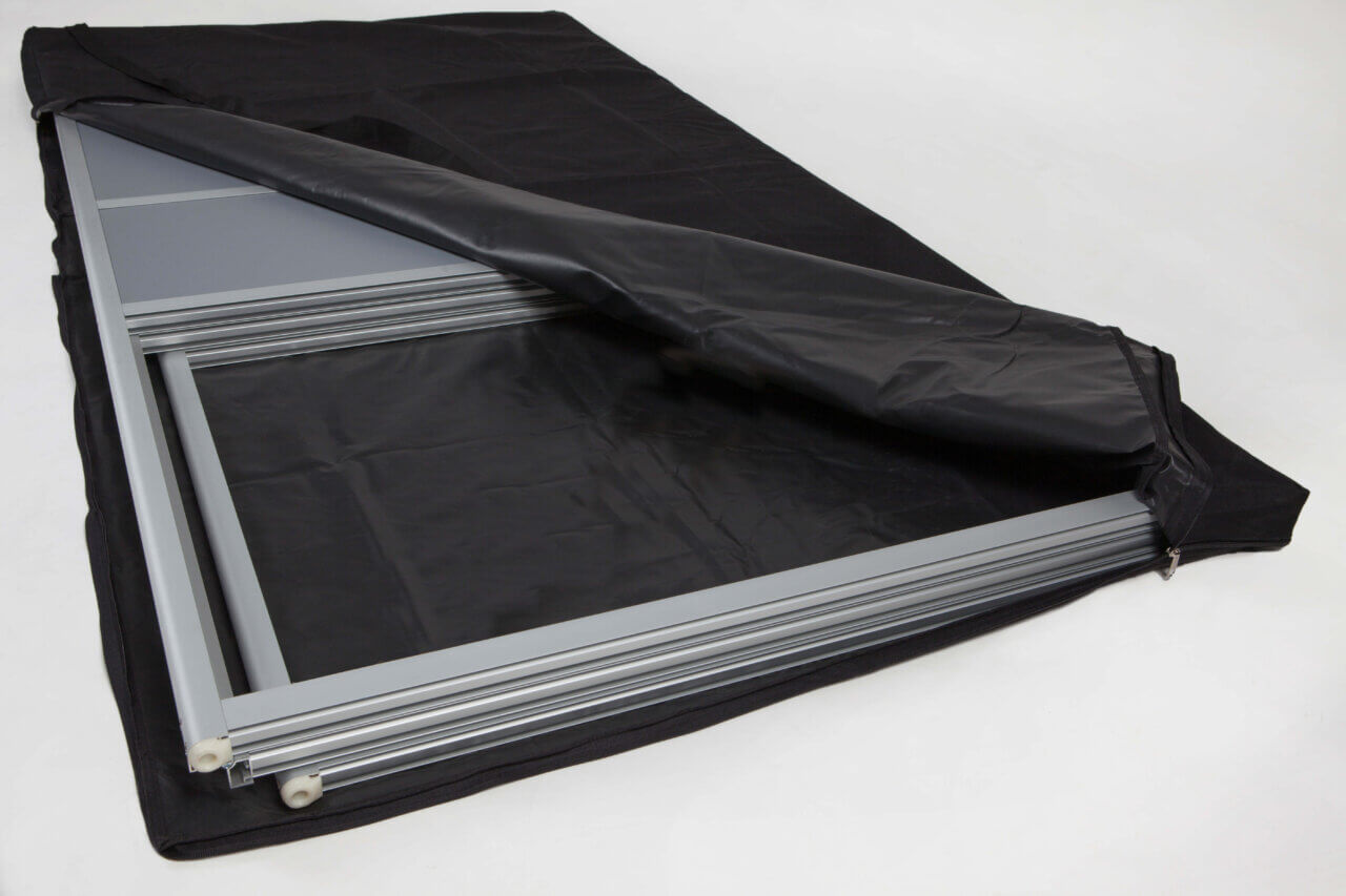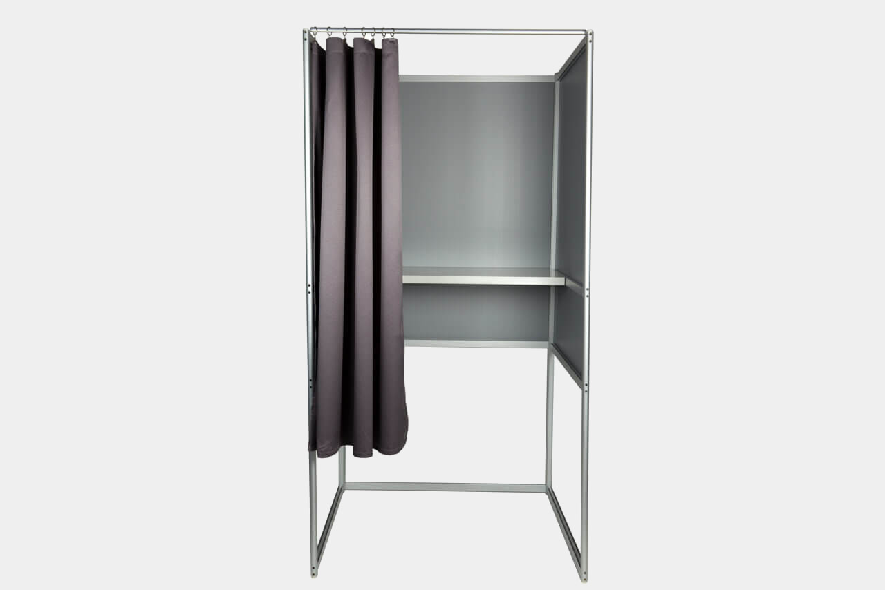 Plié, l’isoloir Ultimate Plus occupe un espace de stockage minimum.